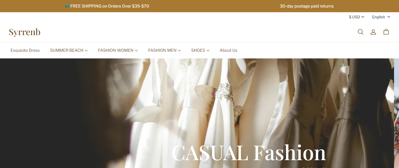 Syrrenb located at Syrrenb.com is an online store that is selling various products such as romper, swimsuits, dresses, jumpsuit, etc And these products are sold at a suspicious discount rate.