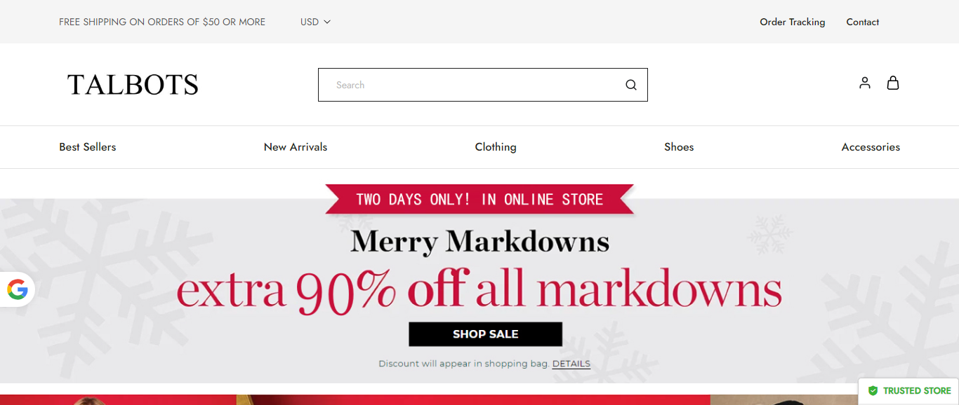 Talbotsonlinesale has so many red flags and these are reasons why you should not bother shopping from the website. Some of the Red flags include: