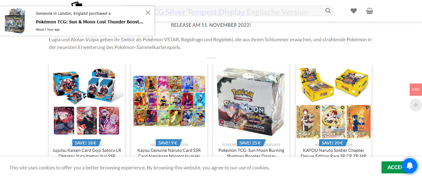 Tcgcards24 located at Tcgcards24.com is an online store that is selling various types of pokemon cards, etc. And these products are sold at a suspicious discount rate.