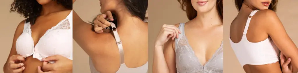 It has a 4 way stretch fabric, for a relaxed fit and instant back and side smoothing, It also has an easy front closure, large hooks and eyes for easy on and off.