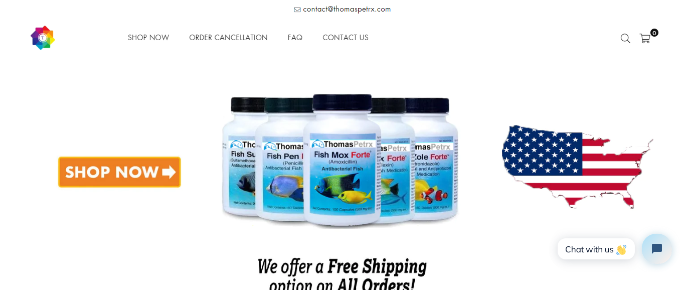 Thomaspetrx located at Thomaspetrx.com is an online store that is selling various types of fish and pets antibiotics, etc And these products are sold at a suspicious discount rate.
