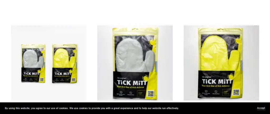 Tick Mitt is a tick protection glove. It is a safe and effective way to remove multiple ticks at once. It can be used for your pets, camping, hiking, gardening, hunting and other outdoor activities.