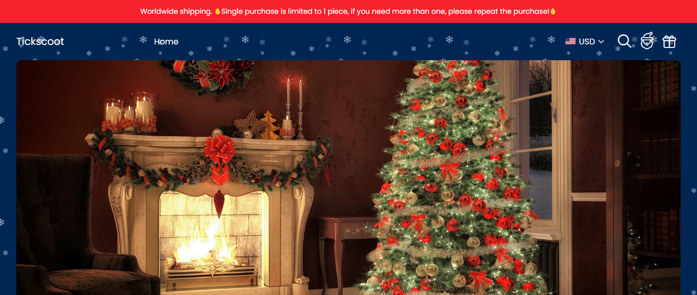 Tickscoot located at Tickscoot.com is an online store that is selling various types of products such as handmade snow man, Christmas wiper sticker, etc. And these products are sold at a suspicious discount rate.