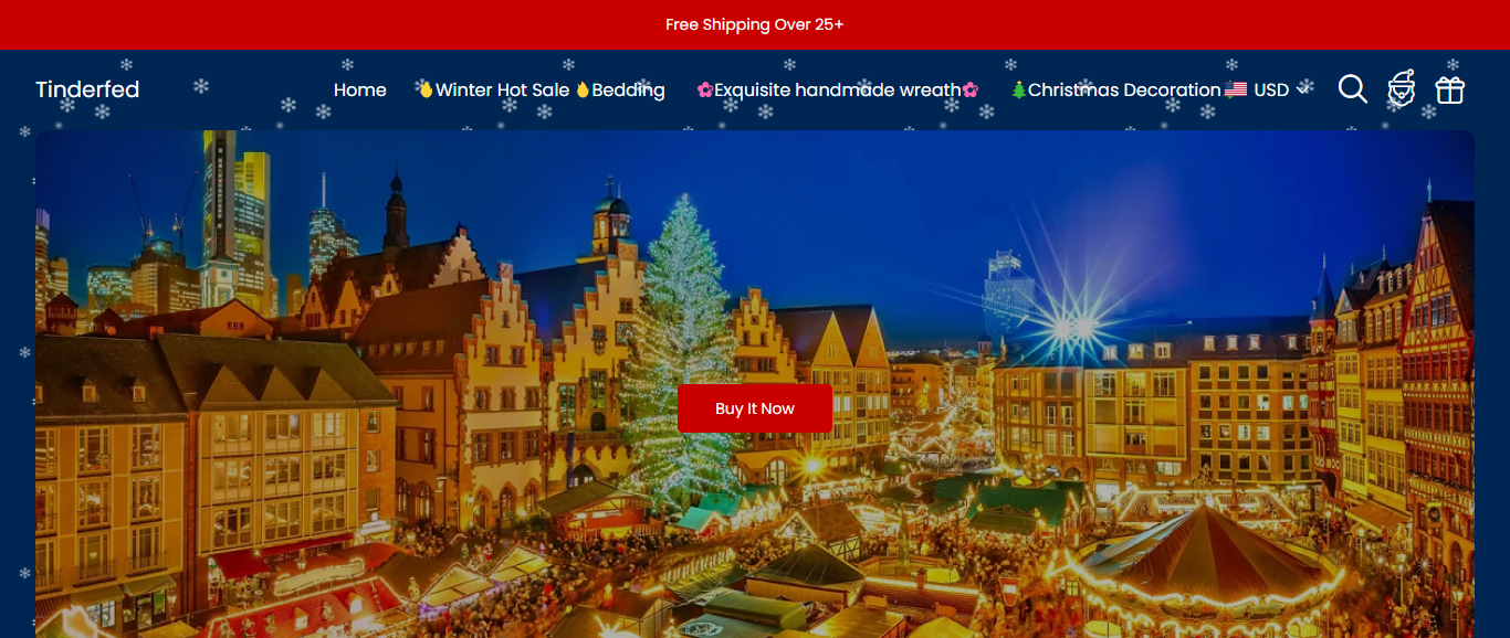 Tinderfed located at Tinderfed.com is an online store that is selling various types of products such as bedding, Christmas decoration, handmade wreath, etc. And these products are sold at a suspicious discount rate.
