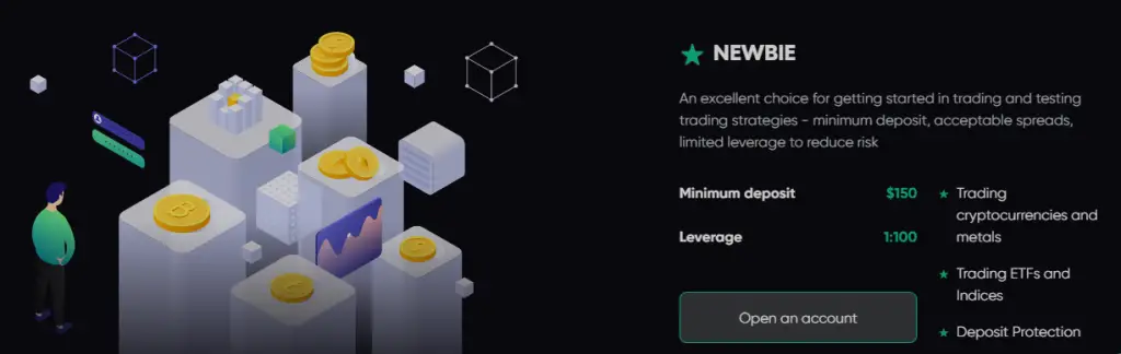 This broker offers minimum deposit of $150 according to the Newbie account. This may appear a good start if only the broker is legitimate.