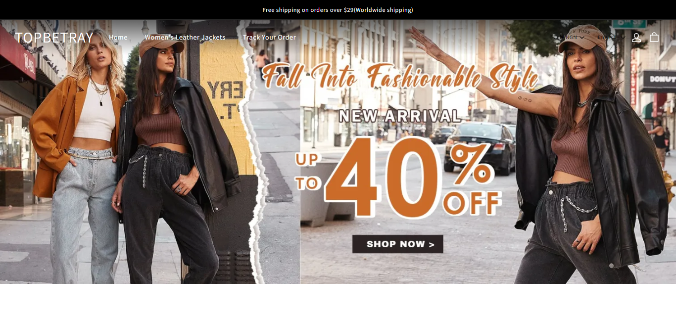Topbetray located at Topbetray.com is an online store that is selling various fashion and clothing such as two piece, leather jacket, etc. And these products are sold at a suspicious discount rate.