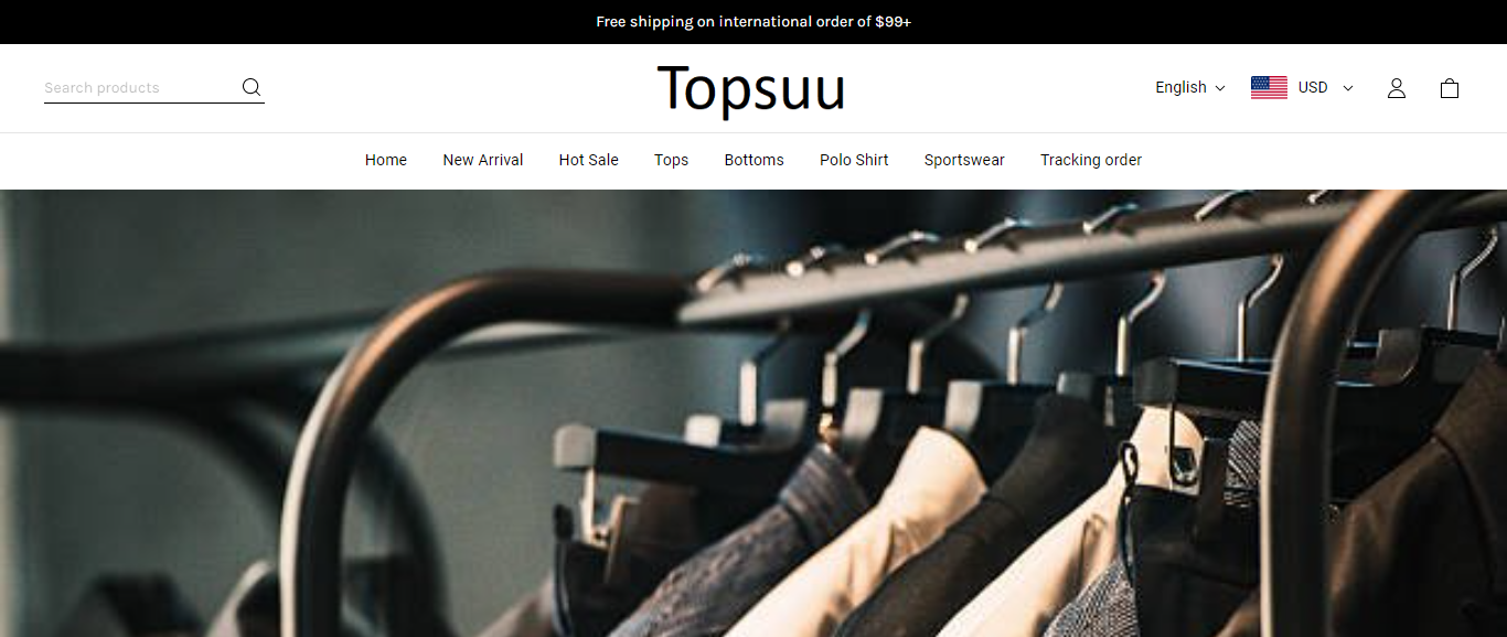 Topsuu located at Topsuu.com is an online store that is selling different types of Male Fashion and clothing such as Tops, Polo shirts, Sportswear, etc. And these products are sold at a suspicious discount rate.