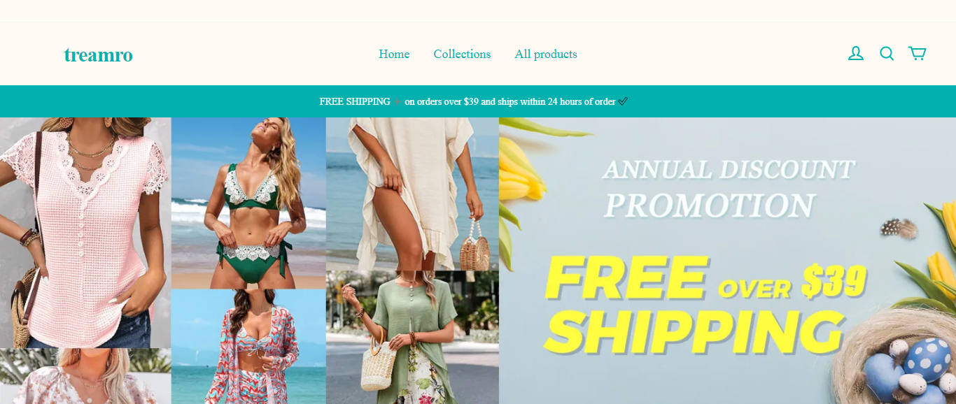 Treamro located at Treamro.com is an online store that is selling various products such as two piece, swim suit, leggings, etc. And these products are sold at a suspicious discount rate.