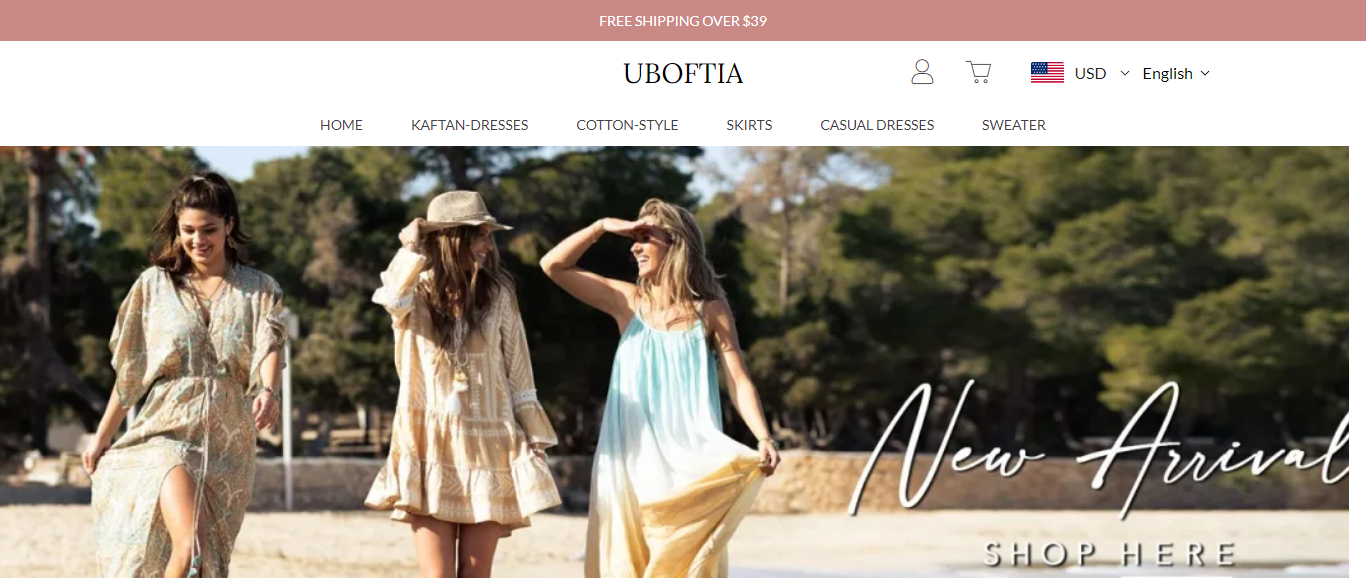 Uboftia located at Uboftia.com is an online store that is selling various products such as skirts, casual dresses, sweater, kaftan dresses, etc. And these products are sold at a suspicious discount rate.