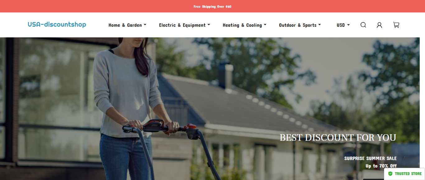 USA-DiscountShop located at USA-DiscountShop.com is an online store that claims to be selling various products such as lawnmower, blower, generator, alternator, air conditioner, etc. And these products are being sold at suspicious discount prices.