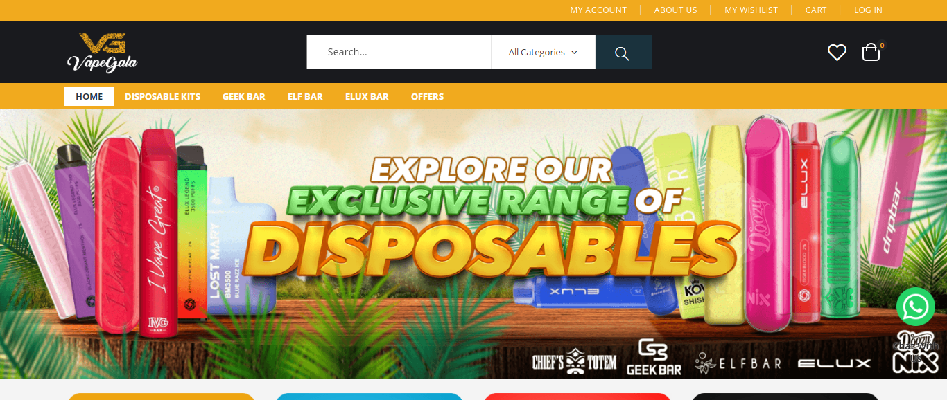 Vapegala located at Vapegala.co.uk is an online store that is selling various types of products like Geek Bar, elf bar, elux bar, disposable kits, etc. And these products are being sold at suspicious discount prices.