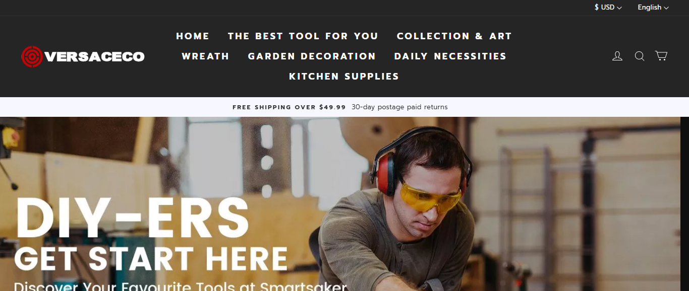 Versaceco located at Versaceco.com is an online store that is selling various types of products such as hole punch locator, miter saw protractor, garden hula hoes, etc. And these products are sold at a suspicious discount rate.