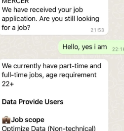 There are so many reviews online about how they received this type of Recruitment scam messages.