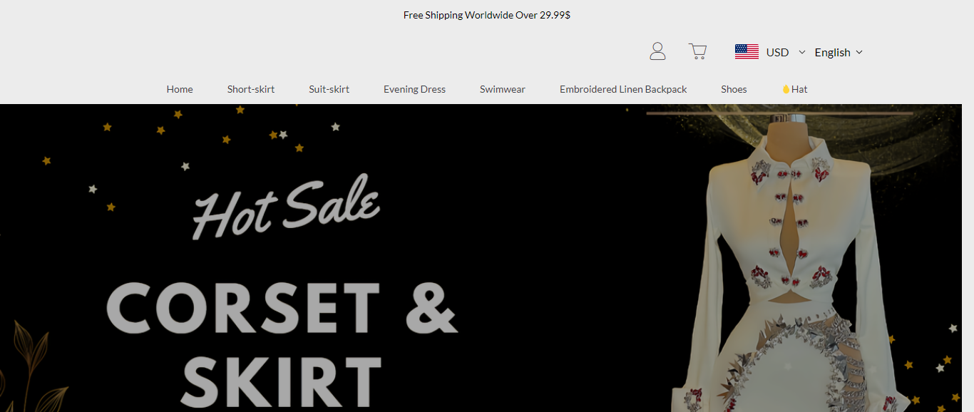 Vitaada located at Vitaada.com is an online store that is selling various clothing and fashion such as short skirt, suit skirt, embroidered linen backpack, evening dress, swim wear, etc. And these products are being sold at suspicious discount prices.
