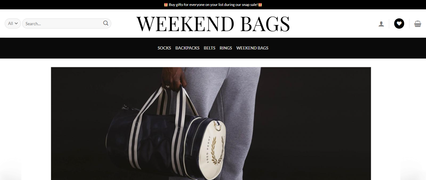 Weekendbagsshop located at Weekendbagsshop.com is an online store that is selling various products such as socks, backpack, rings, weekend bags, etc. And these products are sold at a suspicious discount rate.