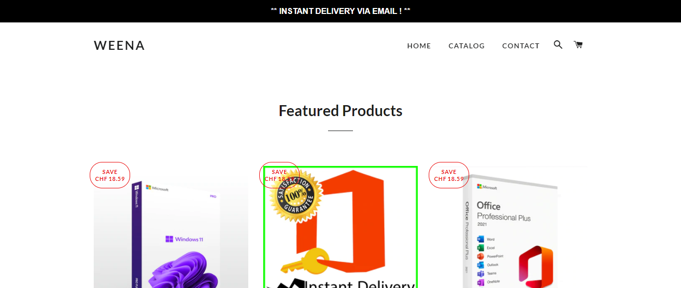 Weena located at Weena.shop is an online store that is selling various products such as Microsoft Office 2021 Professional plus license key, Office 2016 Professional plus licence key, etc. And these items are being sold at suspicious discount prices.