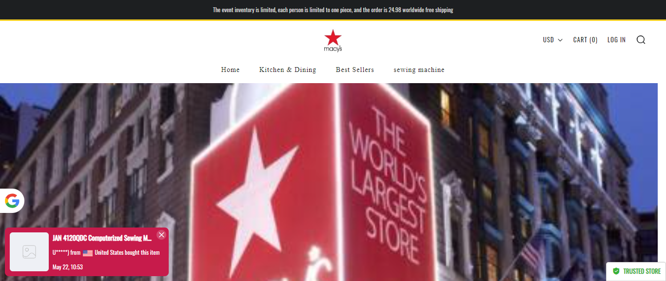 Just like various scam online stores, it uses cheap discount prices to lure customers. However when they place order they receive an entirely different item or a low grade of what was ordered while some unfortunate customers get nothing at all. This is a classic example of a bait and switch scam.