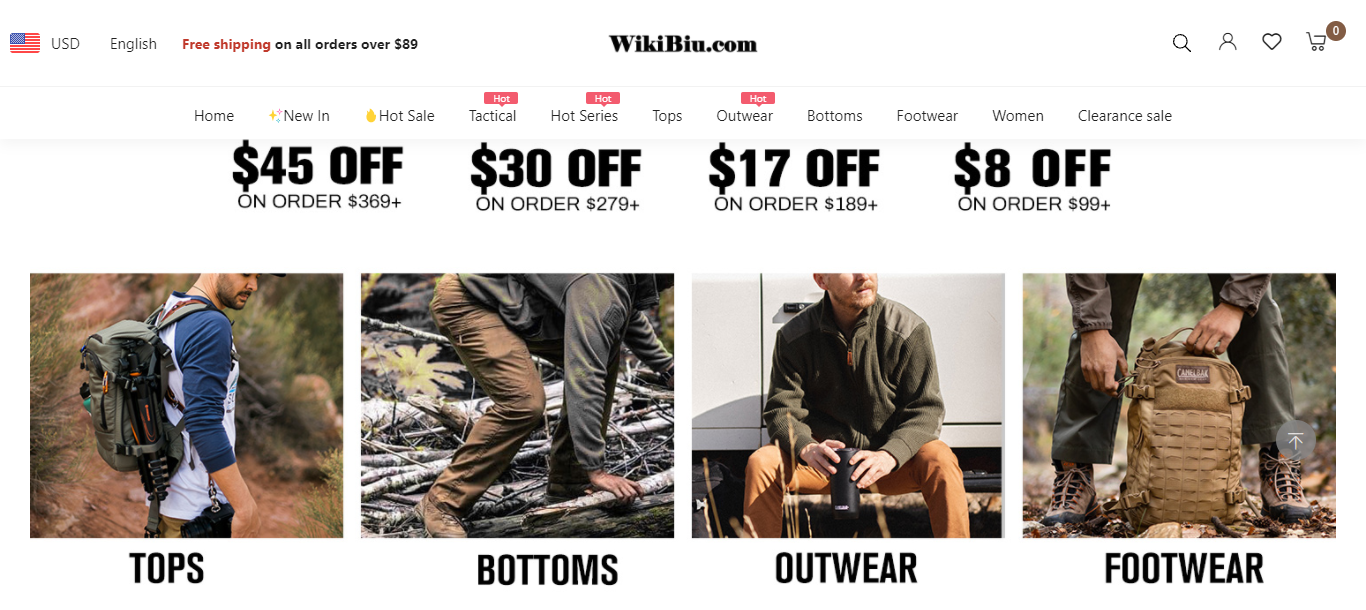 Wikibiu located at wikibiu.com is an online store that deals in various clothing and fashion products such as tops, bottoms, outwear, footwear, tactical, jackets, sweatshirts, casual shirts and tees etc . And these products are being sold at suspicious discount prices.