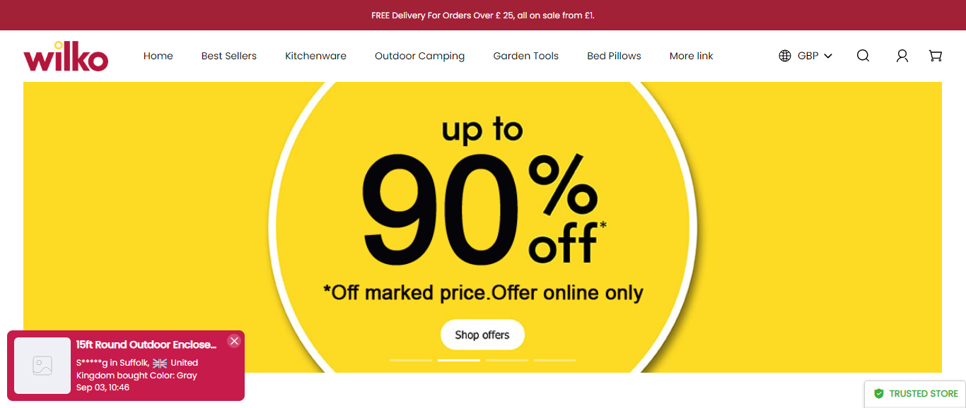 Wilkohugesalelocated at Wilkohugesale.com is an online store that is selling various products such as sofa, electric bicycle, portable tent, canopy, coffee maker, etc. And these products are sold at a suspicious discount rate.