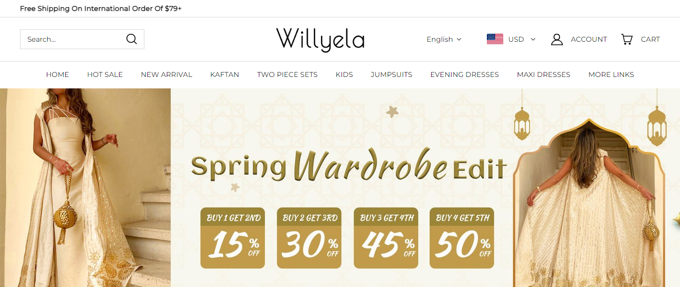 Willyela located at Willyela.com is an online store that is selling various types of clothing such as Kaftans, evening dress, maxi dress,, etc. And these products are sold at a suspicious discount rate.