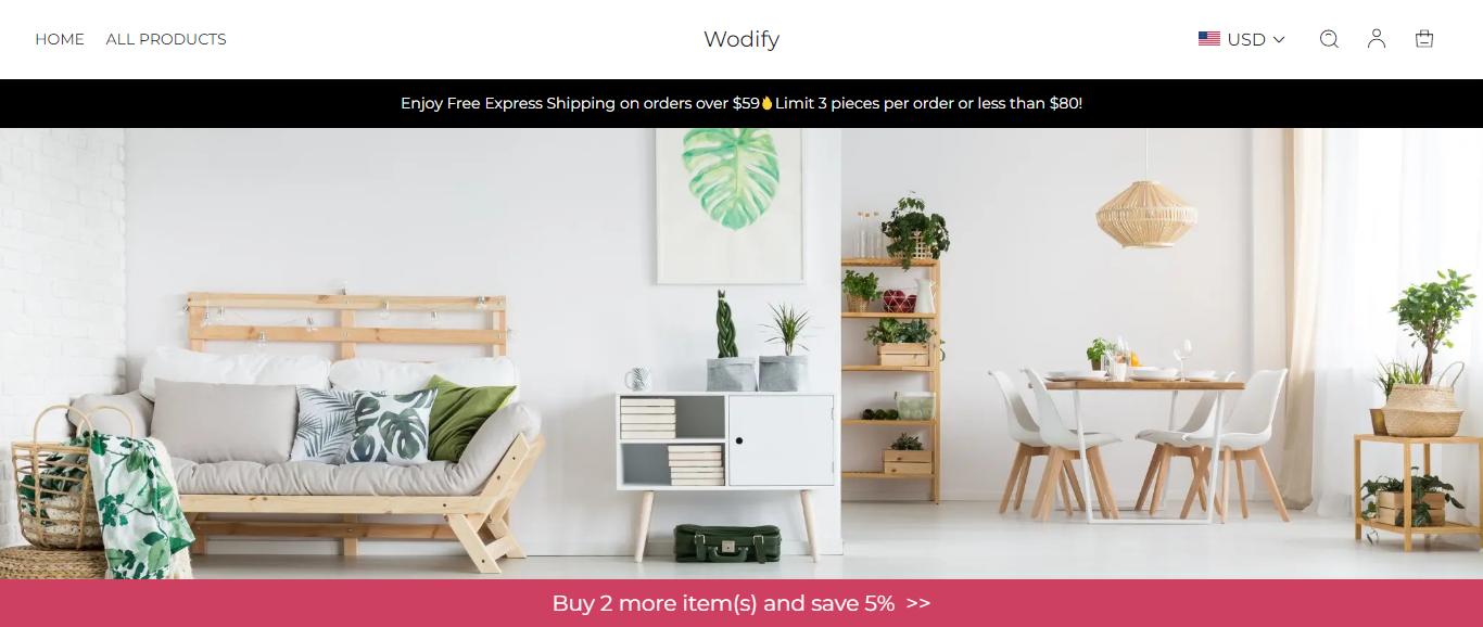 Wodify located at Wodify.store is an online store that is selling various products such as ultra thin shoe cabinet, lazy wardrobe, smart bedside table, folding storage box, etc. And these products are sold at a suspicious discount rate.