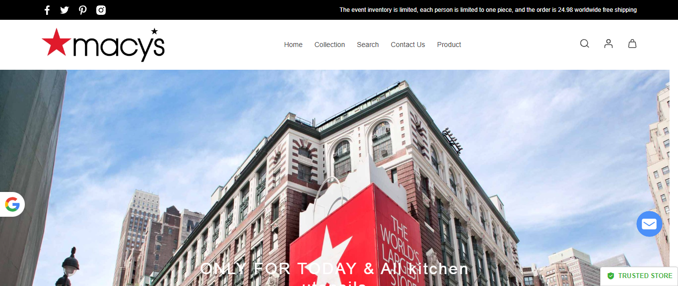 Wqtvof located at Wqtvof.shop is an online store that is impersonating the Macy’s ]brand. It claims to be selling various cookwares and kitchen utensils , etc. And these products are sold at a suspicious discount rate.