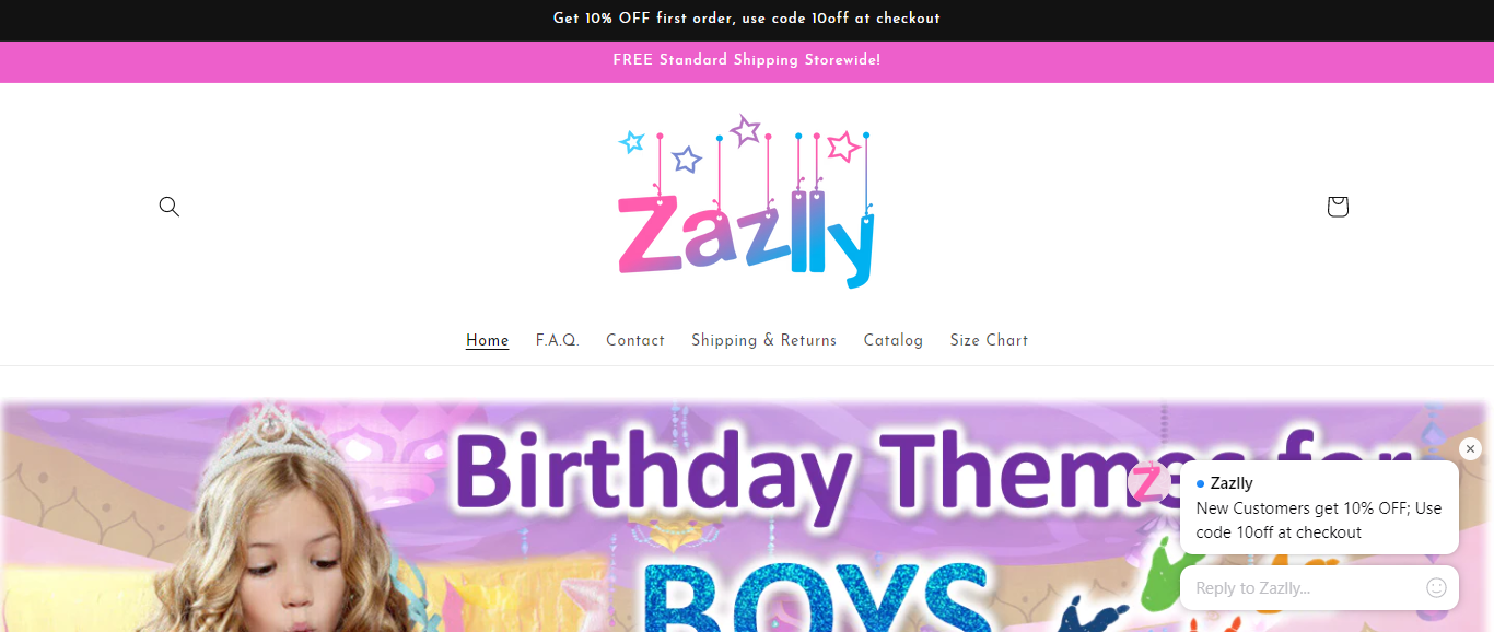 The online website Zazlly (Zazlly.com) advertises sales for children’s birthday clothing and supplies. They use PHOTOS OF CHILDREN wearing items for sale and gift items for kids mainly infants to toddlers. Zazlly use Shopify for payment which is one of the trusted retail sales transaction to lure costumers in thinking their information is safe. I purchased 2 items (about $60) for my daughter’s birthday and have not received any of my orders. It has been 2 months since my purchase with Zazlly.