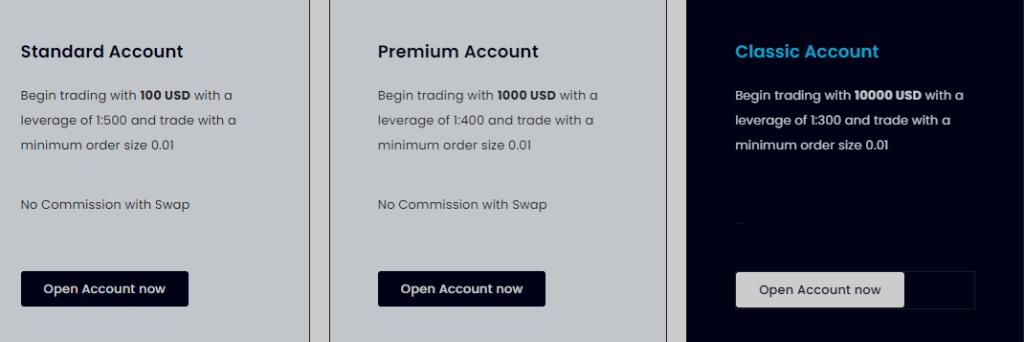 The broker offers different account type such as —